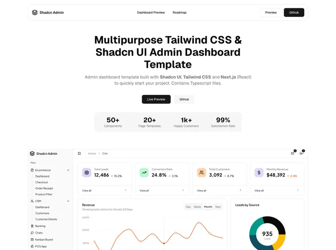 Shadcn Admin is a versatile admin dashboard template designed for modern web applications. Built with popular frameworks like Next.js, React, Vite, and Vue.js, it offers developers a streamlined approach to creating stunning and responsive admin interfaces. Leveraging Tailwind CSS, Shadcn Admin provides a customizable and user-friendly experience, making it an excellent choice for those who want to save time on development while maintaining a high level of design quality.