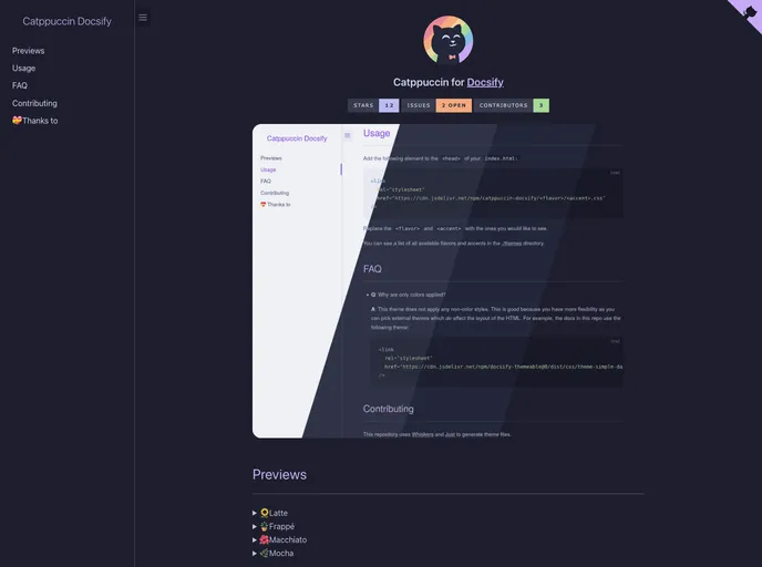 Docsify is a beautiful and calming pastel theme designed to enhance your documentation experience. With its gentle color palette and user-friendly layout, Docsify provides an appealing and distraction-free environment, ideal for both creating and reading documentation. Whether you're a developer, a writer, or anyone in between, this theme will ensure that your content is presented in a visually appealing manner.