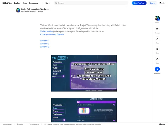 Dépôt qui contient les branches de notre thème où l'objectif est de créer un site du département Techniques d'intégration multimédia