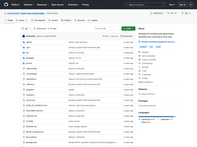 template for building web applications: koa back-end, and next.js front-end