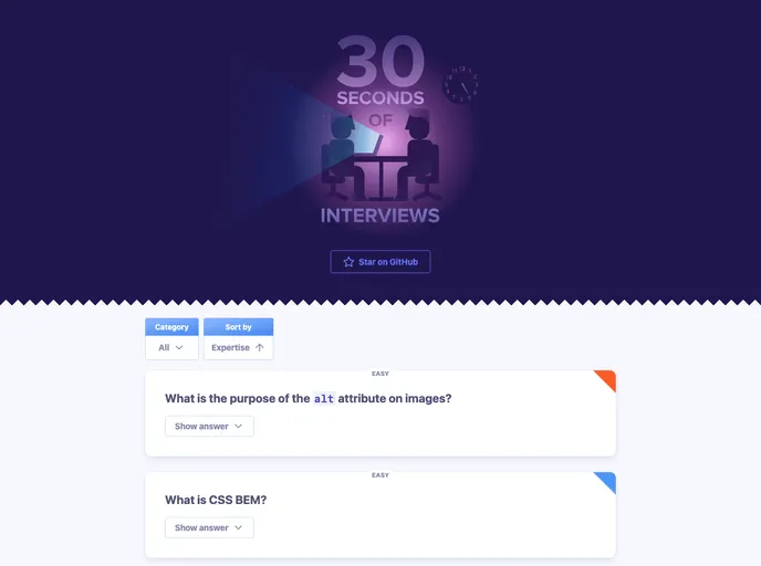 30 Seconds Of Interviews is an invaluable resource designed to help job seekers prepare for their upcoming interviews. This curated collection features a range of common interview questions, providing users with insights and guidance to navigate the often-stressful interview process. Whether you're entering the workforce for the first time or seeking a career change, this tool aims to boost your confidence and enhance your interview skills.