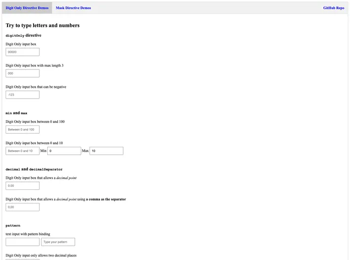 Ngx Digit Only is a useful Angular directive designed specifically to ensure that input fields accept only numeric values ranging from 0 to 9. This functionality is particularly beneficial for applications that require strict input validation, such as forms that handle phone numbers, ages, or other numeric data. With its intuitive implementation, developers can pounce on the opportunity to enhance user experience by preventing unwanted characters right from the start.