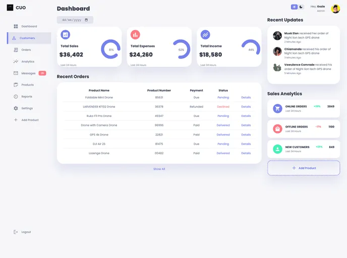 Admin Dashboard Sample