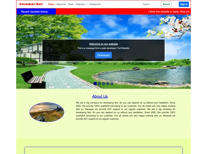 This landing page website was created using HTML, CSS, JavaScript, and Bootstrap. It features a responsive design and various interactive elements.