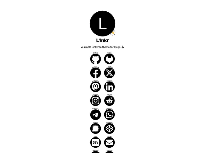 L1nkr - Template provides a simple link tree theme designed for mobile-first, with features such as automatically dark mode, emoji support, and more than 40 supported brand links. The theme can be easily installed by following the provided installation guide. Users can also customize the theme's configuration through the available configuration files.