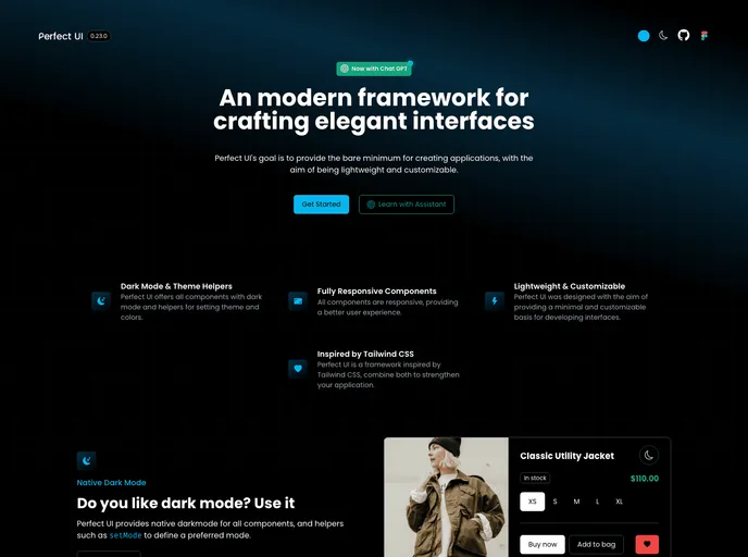 Perfect UI is a lightweight and customizable CSS and JavaScript framework designed for creating elegant user interfaces. It offers a range of features that make it easy to create visually appealing and functional UI designs.