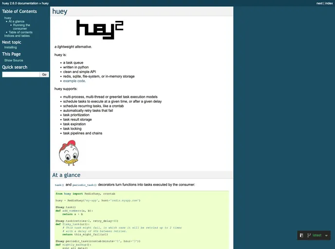 - **Lightweight Design**: Huey is designed to be simple and easy to use, making it ideal for small to medium-sized projects needing task management without extra overhead.