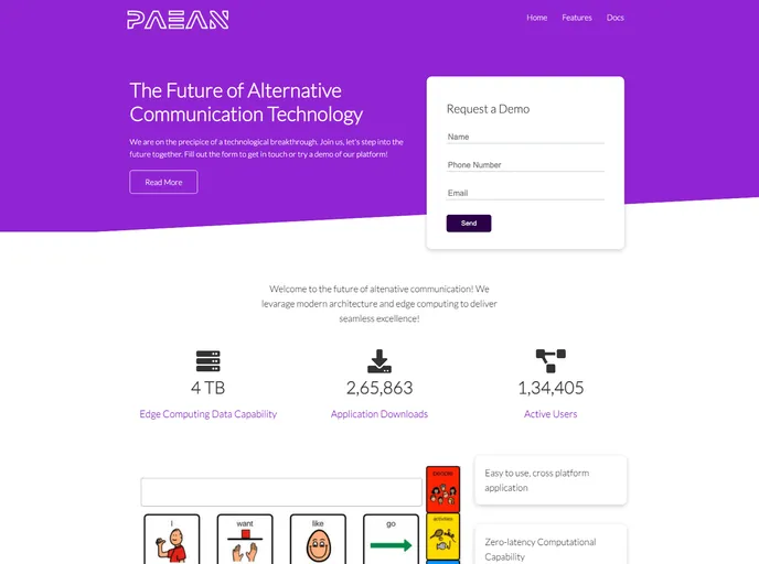This is a responsive website template made using HTML. CSS, and JS for a startups' landing page (Name: Paean)