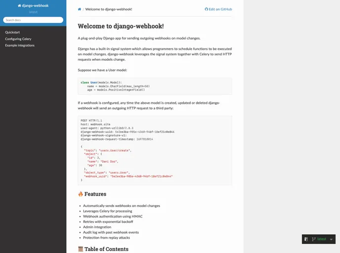 Django Webhook is an innovative tool designed to streamline how web applications communicate with each other. By triggering webhooks upon model changes, it ensures that your application can easily integrate with other systems and respond in real-time to changes in your data. This functionality is especially useful for developers looking to enhance their applications with notification systems, data synchronization, and other automated processes.