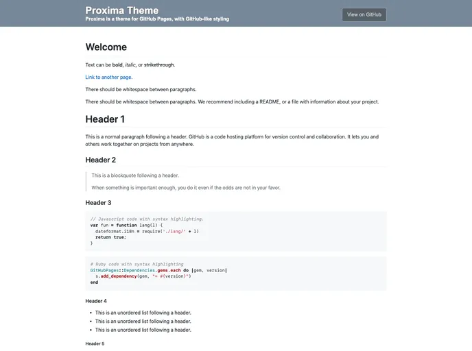 Proxima is a theme for GitHub Pages, with GitHub-like styling