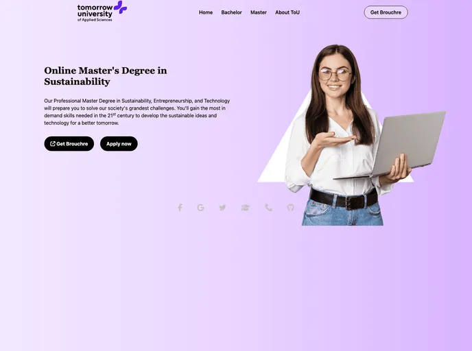The University Website Landing Page is a clone of Tomorrow University's Landing page with the addition of a dark mode option. It was built using TailwindCSS and HTML, providing a modern and responsive design. By following the installation guide, users can easily set up and view the landing page on their own computers.