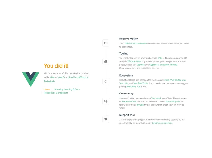 - UNOCss (Tailwind/WindiCSS compact preset): UnoCss utilizes UNOCss, a lightweight and efficient CSS utility framework based on Tailwind/WindiCSS. This allows for easy and flexible styling of components.