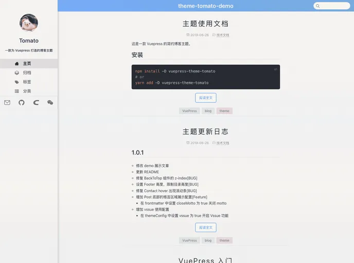 Vuepress Theme Tomato