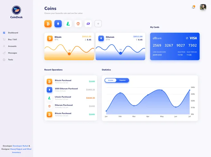 The Coindesk Dashboard is designed to provide a seamless user experience with a sleek and modern aesthetic. With inspiration drawn from impressive designs featured on behance.com, this dashboard transforms stunning visuals into a functional web interface. It combines practicality with creativity, making it an excellent choice for users looking to visualize data effectively.