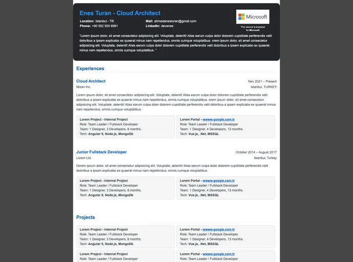 HTML Resume Template for job applications.