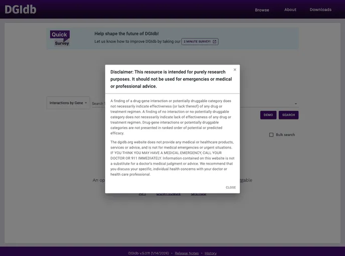 Comprehensive Database: Dgidb connects to a vast drug-gene interaction database, providing extensive data that researchers can rely on for accurate insights.