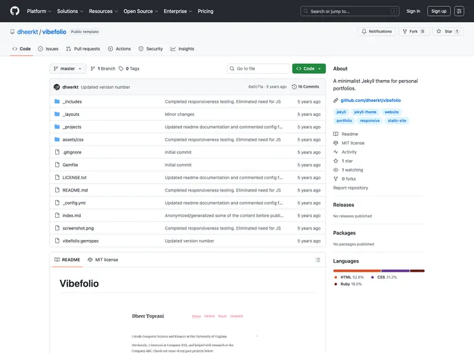 A minimalist Jekyll theme for personal portfolios.