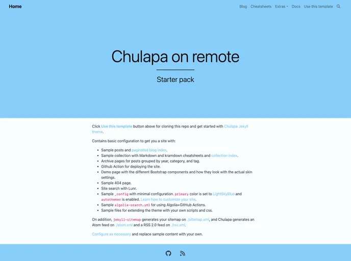 Chulapa 101 is a versatile Jekyll theme that simplifies the process of setting up a website. It offers a range of features including pre-made templates, configuration files, and customization options. With Chulapa 101, users can quickly create and personalize their websites using the provided samples and guides.