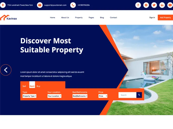 Kavinax : Real Estate Landing Page with the organized information about Sell,Rent & Buy of properties.
