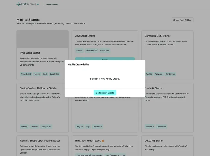 Jamstack site created with Stackbit