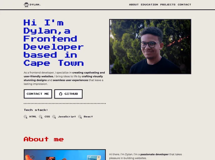 Dylan's Retro Portfolio Website is a visually pleasing and user-friendly platform that showcases the skills, projects, and experiences of Dylan Gangat. With an introduction, skills section, project showcase, educational background information, and contact form, visitors can get a comprehensive overview of Dylan as a software developer. The responsive design ensures a seamless browsing experience across various devices.