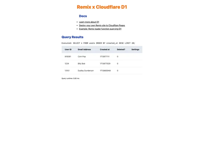 An example app for combining Cloudflare's D1 database with Remix loader functions.