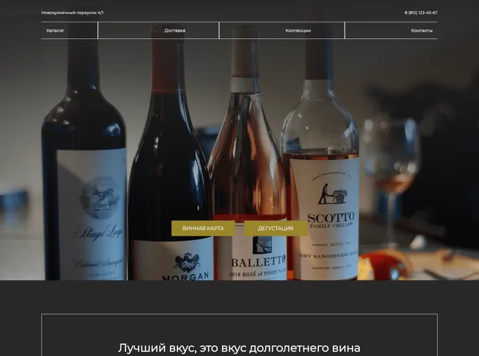 This is a simple one-page landing for the 'Le Corte' wine boutique. It features information about the boutique, its history, the option to book wine tastings, and contact details. Implemented using HTML with accompanying CSS styles.