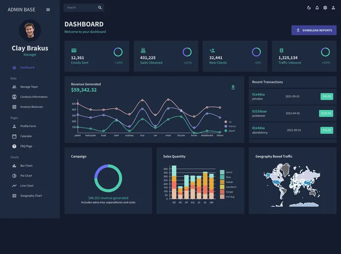 React Admin Dashboard App | React, Material UI, Data Grid, Light & Dark Mode