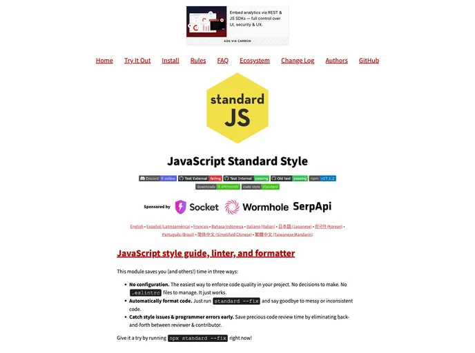 What sets JavaScript Standard Style apart is its simplicity. With no configuration needed, it automatically takes care of code formatting and error detection, making it an indispensable companion for any JavaScript developer looking to improve their workflow and code readability.