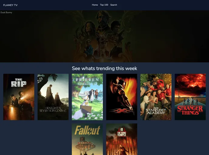 FlameyTV is a web application built with NuxtJS and TailwindCSS, and it utilizes the TMDB API. It is designed to provide users with a seamless streaming experience for their favorite movies and TV shows. With FlameyTV, users can easily search for and view information about movies and TV shows, as well as watch trailers and access other related content.