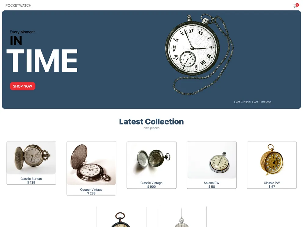 POCKETWATCH is an Ecommerce pocket watch store that is built with React js, Next Js and Sanity-io(Backend/Admin)