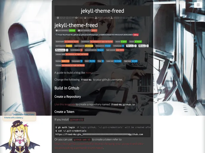 This is a product analysis of a Jekyll theme called "freed". The theme is designed for creating a personal blog or website using Jekyll, a popular static site generator. The theme offers a clean and modern design, with customizable features and easy installation process. It also provides integration with GitHub Actions for automating the build and deployment process. The theme is free to use and can be customized to suit individual preferences.