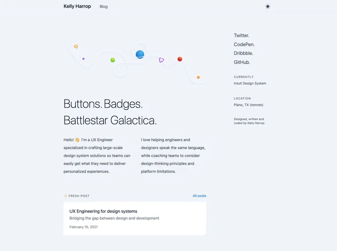 Great portfolio homepage of Kelly Harrop.