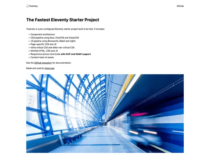 Twelvety is a pre-configured Eleventy starter project built to be fast