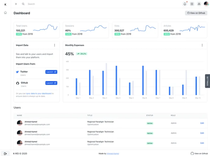 A Dashboard starter built with tailwind +