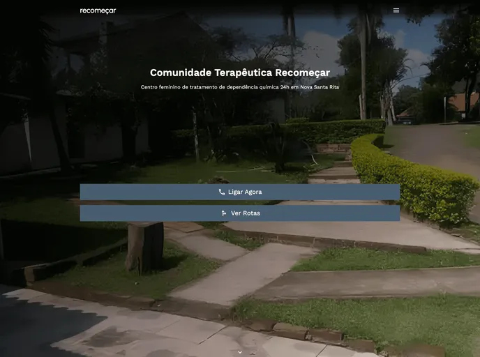 Projeto voluntário de landing page para Comunidade Terapêutica Recomeçar