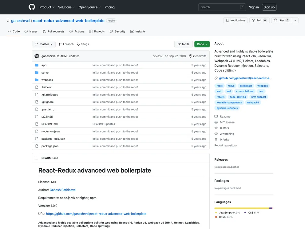 Advanced and highly scalable boilerplate built for web using React v16, Redux v4, Webpack v4 {HMR, Helmet, Loadables, Dynamic Reducer Injection, Selectors, Code splitting}