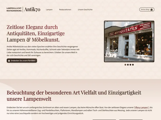 This repository is the home of the Antik70 website source code, a platform showcasing a unique collection of antique furniture, lamps, and art pieces. Each item is a testament to timeless elegance and history, meticulously restored to bring warmth and character to modern spaces.