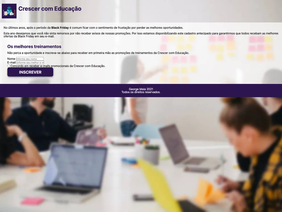 Proposta de Projeto de Landing Page com formulário salvando via localStorage do curso Hiring Coders #2 da Gama Academy.
