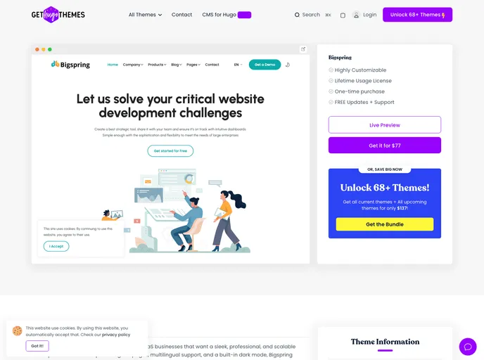 Bigspring is a Hugo startup theme. It has a clean, minimal, fresh UI.