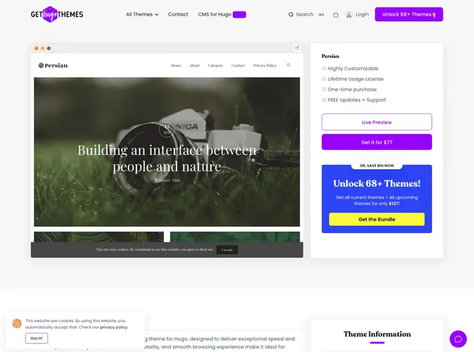 Persian is a box design personal blog theme based on Bootstrap and powered by Hugo. It is very responsive and perfectly fits on any sized screen device.