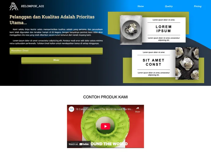 Sebuah Product Landing Page Website yang dikerjakan oleh kelompok A01, yang merupakan tugas kelompok di Bootcamp Progate HTML, CSS dan JAVASCRIPT