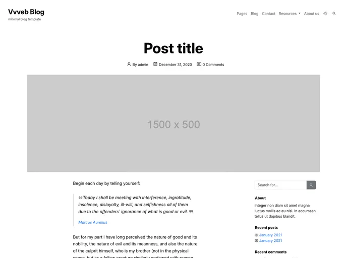 Minimal Bootstrap 5 blog template for Vvveb CMS