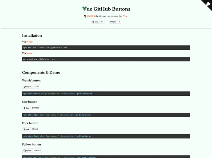 Not only does the Vue GitHub Buttons component cater to functionality, but it also supports integration with popular frameworks like Nuxt and VuePress. With straightforward installation and easy-to-use options, it simplifies the process of enhancing your application’s functionality without compromising on style or performance.