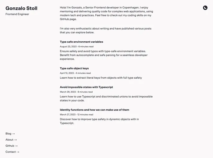 Gonzalo Stoll's blog is a personal blog built with Remix, Typescript, and Tailwind. It utilizes various tools and technologies such as Zod, Playwright, and Vercel for development and deployment.