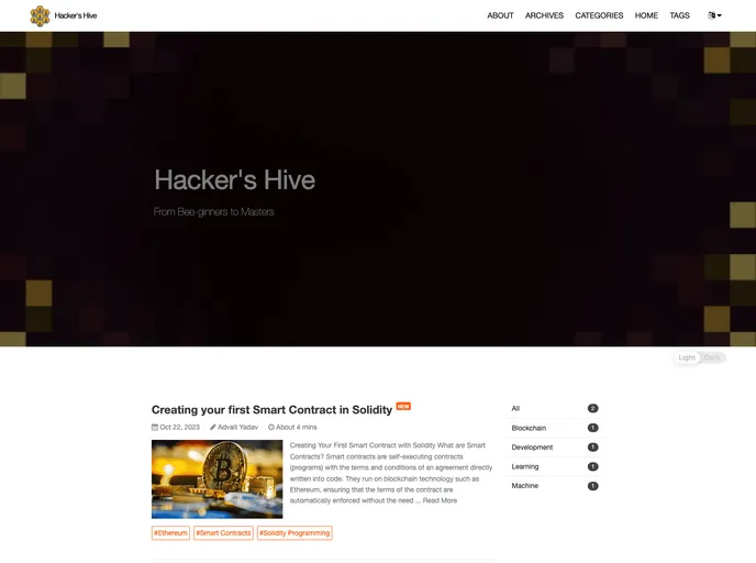 Hacker's Hive is an open-source programming blog that aims to bring together a community of programming enthusiasts, from students to seasoned developers. The blog is dedicated to sharing knowledge, insights, and tutorials to help developers of all levels. It serves as a central hub for the blog's content, code, and collaboration.
