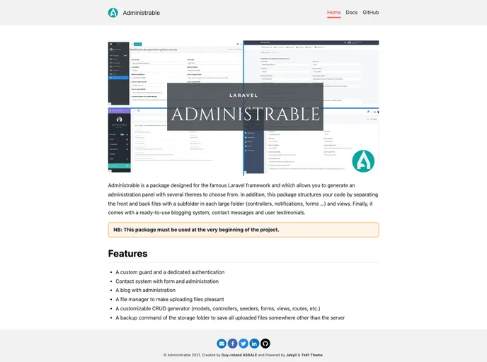 The AdministrablePackagist package is a customizable back office solution for Laravel projects. It allows for easy generation and modification of files within the working folder, making it convenient for developers who want to create their own administration interface according to their needs and conventions. With the ability to work with versioning systems like git, developers can easily rollback changes if needed.