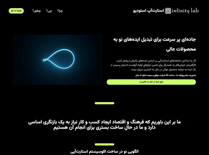 Landing Page designed and developed for Infinity Lab Startup Studio