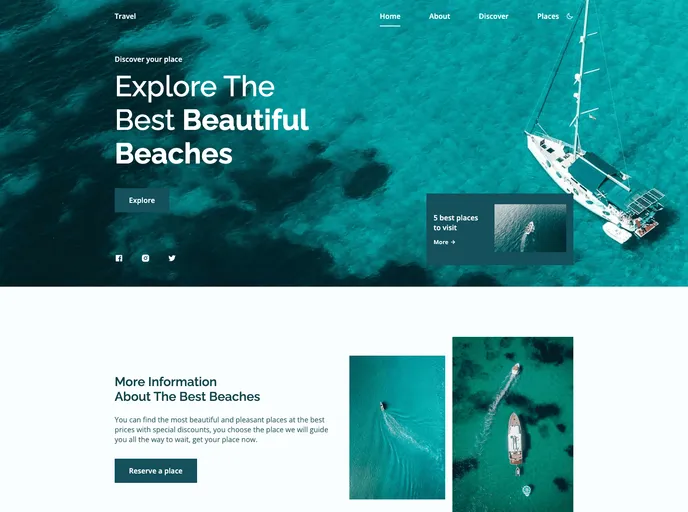 The responsive travel website is a visually appealing and user-friendly platform that showcases the most beautiful beaches. It offers a responsive design, scroll animations, and a dark and light mode feature. Developed using the Mobile First methodology, the website ensures compatibility across all mobile devices. With its pleasant user interface, this website is an excellent choice for travelers looking for beach destination inspiration.