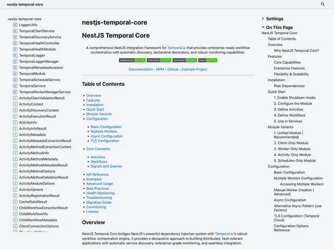 With its declarative decorators and automatic service discovery, NestJS Temporal Core simplifies the development of enterprise-level applications. Coupled with robust monitoring and health check features, it ensures that applications not only run smoothly but can also be effectively managed and maintained in production environments.